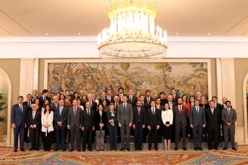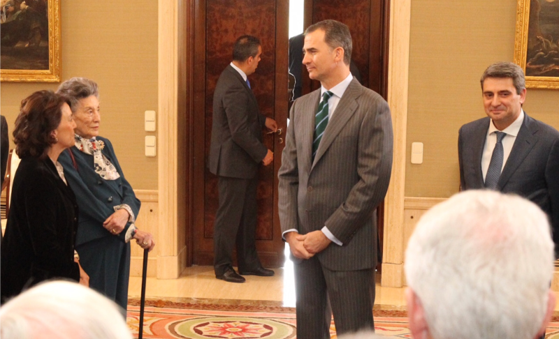 Varios miembros de la Junta Directiva actual guardan afectuosamente en la memoria dos breves intercambios con ella. Uno, en una comida en la propia Fundación allá por 2015. Otro, cuando Dña. Ana María formó parte de la comitiva que fue recibida en audiencia por S.M. el Rey Felipe VI con motivo del XV aniversario de nuestro programa de beca. En ambas ocasiones, obviamente, el vínculo y la complicidad entre nietos, hijos y madre estaban siempre muy presentes.